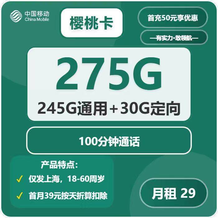 远影卡29元包155G通用+30G定向+通话0.1元/分钟