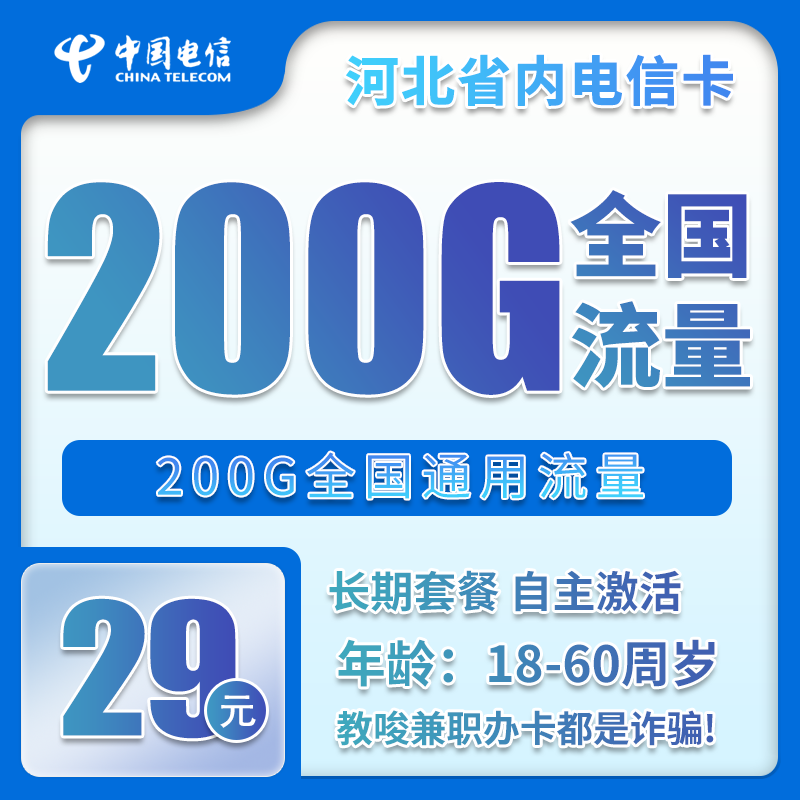 紫檀卡29元包200G通用+30G定向+通话0.1元/分钟
